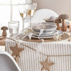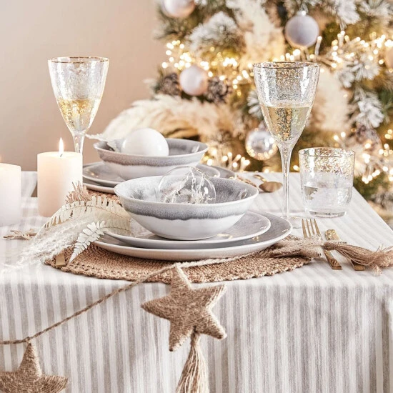 Herringbone trifft Streifen: Die Atelier Tischdecke 250 x 160 cm bringt ein zeitloses Muster im klassischen Stil auf den gedeckten Tisch. Gefertigt ist die Tischwäsche aus den Naturmaterialien Leinen und Baumwolle, farblich ist sie in Creme und Beige gehalten. Das wertige Material und das dezente Muster machen die Tischwäsche zu einem echten Allrounder, sie bildet z.B. die Grundlage festlicher Dekorationen mit viel (Tafel-)Silber oder wertet schlicht gehaltene Tischdekorationen auf. Aus der Serie Atelier sind Tischdecken in verschiedenen Größen, ein Tischläufer und eine passende Stoffserviette erhältlich.