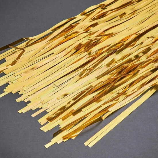 Mit dem Banner Day Fransenvorhang in Gold sorgen Sie dafür, dass Geburtstags-Kinder, Hochzeits-Paare, Uni-Absolventen, Jubilare und andere gefeierte Hauptdarsteller ihren großen Auftritt haben. Einfach im Türrahmen aufhängen – oder als funky Party-Deko verwenden.