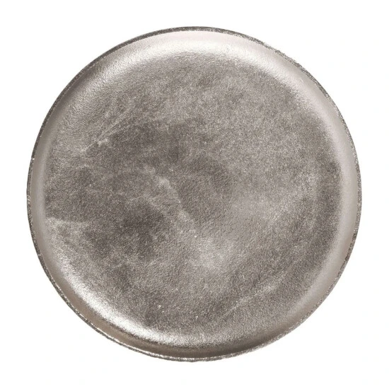 Aus einem früheren Jahrhundert könnten die Banquet-Schalen und -Teller mit ihrem Glanz und ihrer strukturierten Oberfläche stammen. Und genau wie damals verschönern Sie die Tafel und den Raum. Aus vernickeltem Aluminium, mit Softpads an der Unterseite.