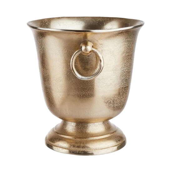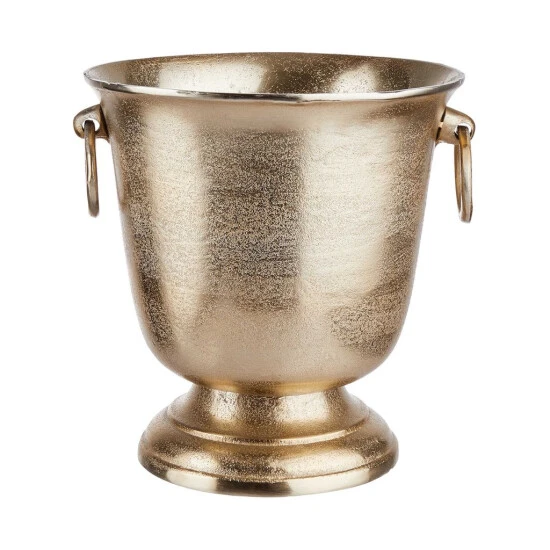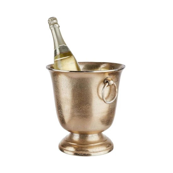 Wenn schon, denn schon: Prickelnden Champagner und erlesenen Wein präsentieren Sie im edlen Banquet Flaschenkühler – auf dem gedeckten Tisch oder bei größeren Festen auf Ihrer Bar. Dabei sprechen Sie gerne einen Toast aus auf die klassische Form mit zwei Ringen zum einfachen Tragen, das goldfarbene Aluminium und die hochwertige Optik dieses Wein- und Sektkühlers.