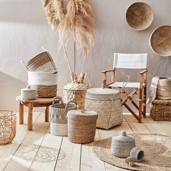 Oben weiß, unten natur – der Basic Braid Seegras-Korb 26 cm macht Ordnung halten, Sortieren, Verstauen und Aufbewahren noch viel schöner. Mit Griffen. Weitere Größen und Varianten erhältlich.