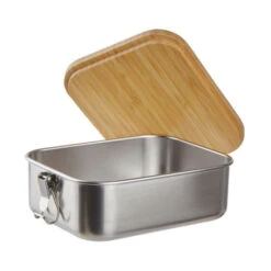 Meal Prepping ist angesagt, lecker – und jetzt auch richtig chic mit der Bento Edelstahl Lunchbox 1,2 l. In dieser Box mit Bambusdeckel nehmen Sie Ihr vorbereitetes Essen mit in die Schule, Uni oder Arbeit und lassen es sich dort schmecken. Ist doch viel besser, als in der Kantine oder Cafeteria zu speisen.