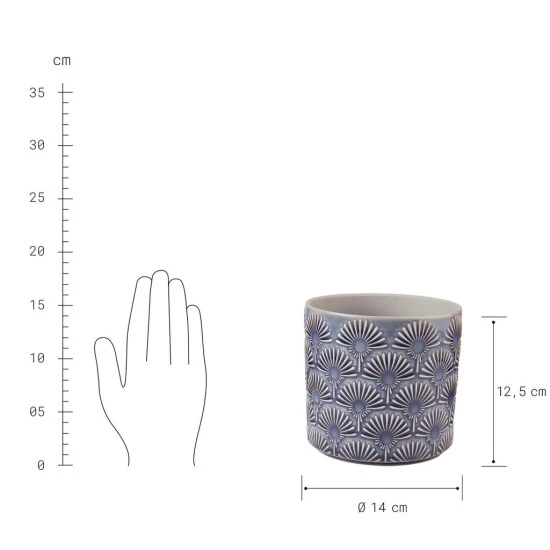 Einfach mustergültig: Der Ornament-geschmückte Bloomy Blumentopf 12,5 cm lässt das Kunststoff-Drumherum von Topfblumen dekorativ verschwinden. Aus Steingut. In verschiedenen Größen und Farben erhältlich, ideal auch zum Kombinieren.