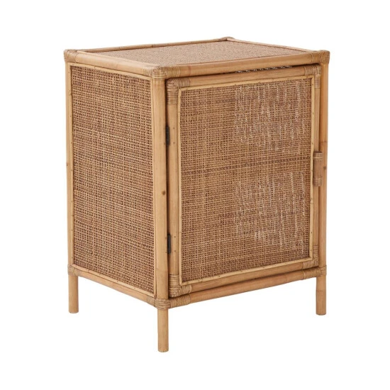 Rattan zählt zu den ältesten Naturmaterialien, die für Möbel verwendet werden – und zieht als Boho Lounge Nachttisch-Schränkchen jetzt in Ihr Schlafzimmer ein. Dort sorgt es für Ordnung und eine richtig gemütliche Atmosphäre. Das liegt zum einen an der authentischen Handwerkskunst, zum anderen an den leichten Farbunregelmäßigkeiten, die so typisch sind für Rattan. Echt statt perfekt, das ist das Geheimnis.