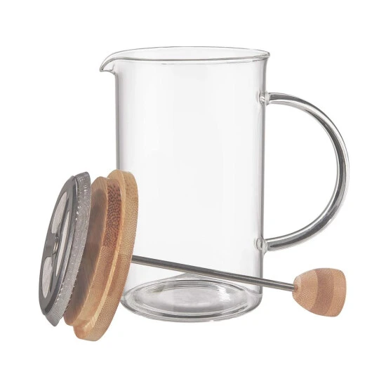 Ein heißer Tipp: Diese „Kaffee- und Teemaschine“ kommt ohne Strom und Papierfilter aus. Sie füllen Kaffeepulver oder losen Tee hinein, geben heißes Wasser hinzu – und drücken kurz darauf den Filter mit leichtem Druck nach unten. Schon können Sie den duftenden Kaffee oder aromatischen Tee ganz frisch genießen. Halterung aus Edelstahl, Einsatz aus Borosilikatglas und Bambus.