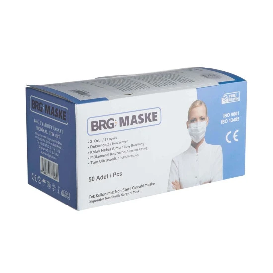 In jeder Jacke, in jeder Handtasche braucht man heutzutage eine frische Mund-Nase-Bedeckung griffbereit. Deshalb statten Sie sich mit der BRG Einwegmasken im praktischen 50er Pack aus, bestehend aus 3-lagigem Spundbound-Stoff in neutralem Weiß.