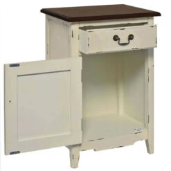 Inspiriert vom amerikanischen Landhausstil der 60er Jahre: Der Cabotte Cove Nachttisch mit Schublade und Tür verbreitet mit seinem Used-Look familiäre Gemütlichkeit. Farblich kombiniert er Paulowniaholz und Eschenholz in Creme mit einer MDF-Platte in braunem Esche-Furnier. Passend dazu sind die Metallbeschläge im Vintagestil gehalten, und auch der Kassetteneinsatz im Rillendekor harmoniert perfekt. Alles ganz genau so, wie man es schon früher in den kleinen, verschlafenen Ort irgendwo im Nirgendwo der USA geliebt hat. Zum Kombinieren sind weitere Möbelstücke aus der Cabotte Cove Serie erhältlich.