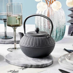Ob morgens oder nachmittags, ob mit grünem oder schwarzem Tee, ob mit einem Schuss Milch oder einem Stück Gebäck – Sie entwickeln Ihre ganz private Tee-Zeremonie mit der Ceremony-Teekanne aus grauem Gusseisen. Die Form dieser Teekanne ist asiatisch inspiriert, im Inneren verbirgt sie einen Siebeinsatz. Schwere Ausführung.