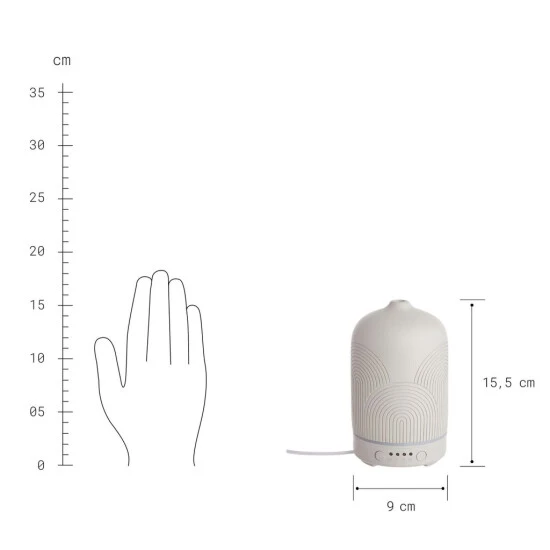 Der Cloud Nine Aroma Diffuser Regenbogen mit Keramikabdeckung eignet sich hervorragend, um Ihr Zuhause mit einem verwöhnenden Duft nach ätherischen Ölen zu erfüllen. Einfach den Wassertank bis zur Markierung befüllen, einige Tropfen des gewünschten Aroma-Öls dazugeben, den Diffusor starten und sich von dem angenehmen Duft verzaubern lassen. Um das Verwöhn-Erlebnis noch vollkommener zu gestalten, schalten Sie einfach die Lichtfunktion ein. Über die sieben einstellbaren LED-Farben kreieren Sie die perfekte Wohlfühlatmosphäre.