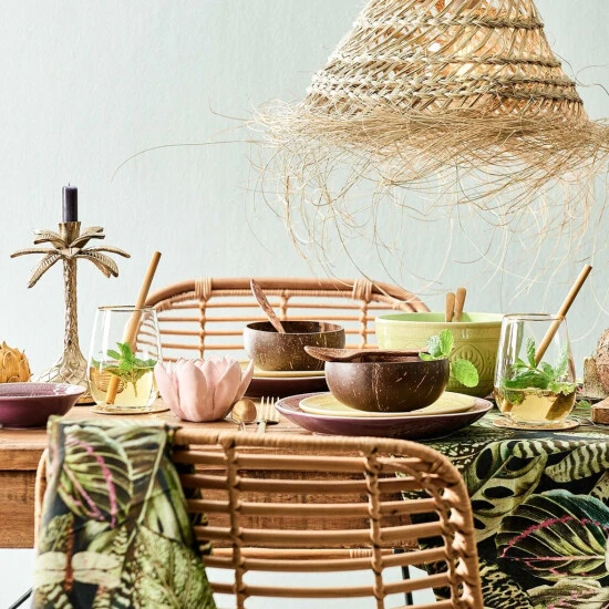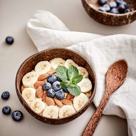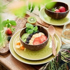 Die Natur bringt die besten Sachen auf den Tisch – und jetzt auch das Coconut 8-teilige Geschirrset. Ja, diese Schalen und Löffel bestehen aus echter Kokosnuss, das ist sehr robust und macht jedes Teil zu einem Unikat. Als naturverbundener Allrounder ist er perfekt zum Servieren von Salaten, für Ihre Lieblings-Bowl, den leckeren Smoothie am Morgen und kleinen Snacks am Abend.
