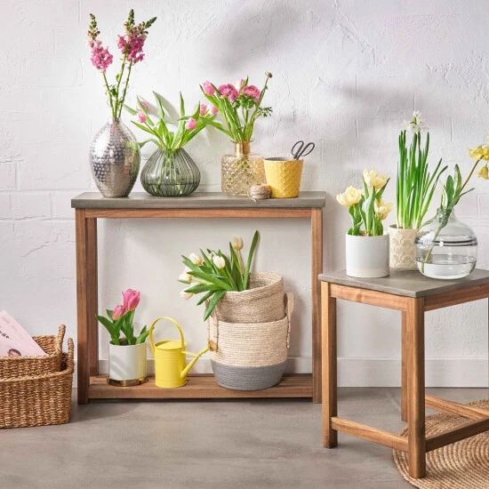 Ausladende Formen sind auf Ihrem kleinen Balkon oder engen Flur fehl am Platze. Deshalb setzen Sie mit der Concrete Konsole auf eine schmale Schönheit, die Sie nicht einengt, sondern Ihnen viel Freiraum beim Einrichten lässt.