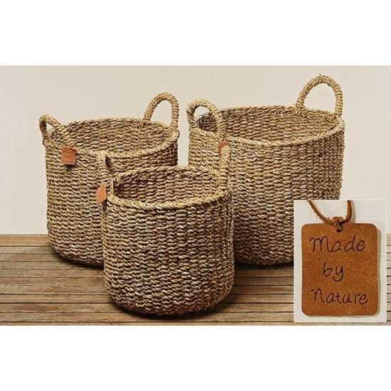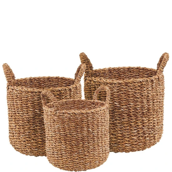 Das Corbeille Korb-Set mit Henkel aus Seegras gibt Durcheinander oder Unordnung einen Korb und lässt Sie beim Aufbewahren und Dekorieren immer wieder auf neue Ideen kommen. Aus der Corbeille-Serie sind weitere Körbe, ein Hocker und ein Teppich aus Seegras erhältlich – im charakteristischen warmen Braunton.