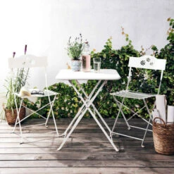 Sobald der Daisy Jane Klappstuhl aus Eisen im Freien steht, zwitschern die Vögel, tanzen die Sonnenstrahlen und das Gute-Laune-Barometer steht auf „besser geht´s nicht“. Denn die Daisy Jane Gartenmöbel-Serie versprüht Leichtigkeit pur- erhältlich in verschiedenen Farben.