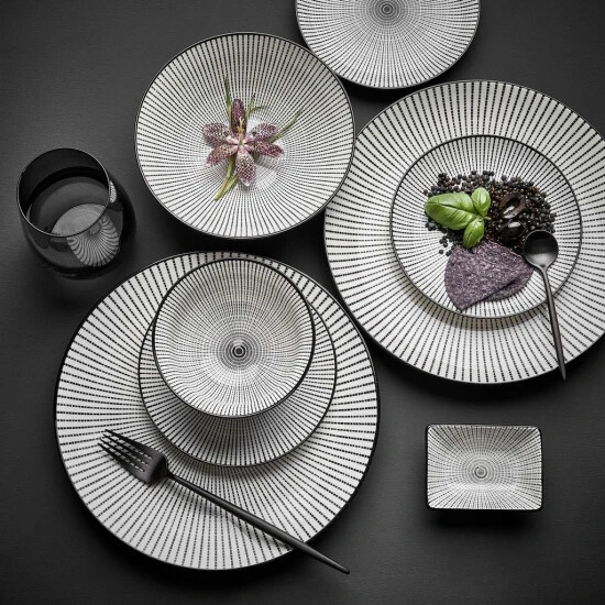 Das rechteckige Schälchen der Dim Sum-Reihe ist ein Glanzstück auf dem Tisch und bietet ostasiatischen Flair mit typisch klarer Form sowie modernen und kontrastreichen grafischen Mustern. Auf den kleinen Schalen servieren Sie Häppchen für große Feiern, besondere Anlässe, Geburtstage, Weihnachten und Ostern, denn die eckigen Schalen sind immer ein Highlight und schmücken jede Tafel. Neben seinem zarten Auftreten ist das anmutige Service sehr robust und bietet beste Qualität.