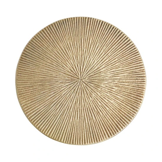 Ein Symbol für Energie, Stärke, Ewigkeit: Kein Wunder, dass wir die Farbe Gold so sehr in unserem Zuhause lieben. Auch der goldfarbene, aus Aluminium gefertigte Disc Deko Teller mit Rillen verfügt über diese besondere Strahlkraft. Mit seiner kompakten Größe lässt sich der Dekoteller vielseitig einsetzen und in die verschiedensten Dekorationen integrieren, z.B. auf dem gedeckten Tisch. In zwei Größen erhältlich, ideal auch zum Kombinieren.