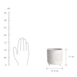 Ihre Deko sammelt jede Menge Pluspunkte mit dem Dot Blumentopf in Creme. Der kleine Blumentopf ist kompakte 11 cm hoch und hat einen Durchmesser von 12,5 cm, womit er sich gut in Ihre Tischdekoration integrieren lässt und auch auf kleinen Beistell- oder Balkontischen noch Platz findet. Mit einer passend Topfpflanze ideal auch zum Verschenken.