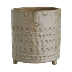 Ihr Fernweh leben Sie in trendigen Ethno-Accessoires für Ihr Zuhause aus – mit dem Ethno Blumentopf mit Gesicht aus hellbraunem Porzellan. Der Blumentopf lässt sich mit frischen Kräutern oder Sukkulenten beispielsweise auf Fensterbänken platzieren oder auf dem gedeckten Tisch gruppieren. Oder Sie lassen die Pflanze weg, und dekorieren den Blumentopf als Blickfang im Regal.