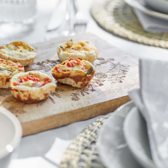 Ganz schön schnittig im Design: Das große Fine Cut Schneidebrett mit Blumen aus echtem Mangoholz geht Ihnen nicht nur bei der Küchen-Arbeit zur Hand, sondern gibt auch beim Anrichten und Servieren ein stilvolles Bild ab, z. B. für Käse oder Schinken, auf dem Tisch oder dem Buffet.