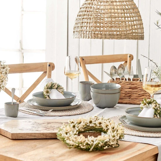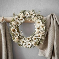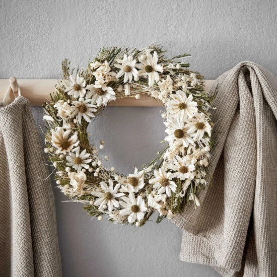 Dekos mit Trockenblumen sind ja so angesagt – und jetzt noch schöner mit dem weißen Flower Market Trockenblumenkranz. Dieser dekorative Kranz mit gut 24 cm Durchmesser wird zum Hingucker auf Ihrem gedeckten Tisch – und sogar zum verspielten Highlight Ihrer festlichen Tafel. Einfach Kerzen und Servietten farblich darauf abstimmen, und schon ist der Look perfekt. Mit sorgfältig zusammengestellten Trockenblumen und langer Haltbarkeit – ganz ohne Pflege. In weiteren Varianten erhältlich, zudem gibt es passende Serviettenringe.