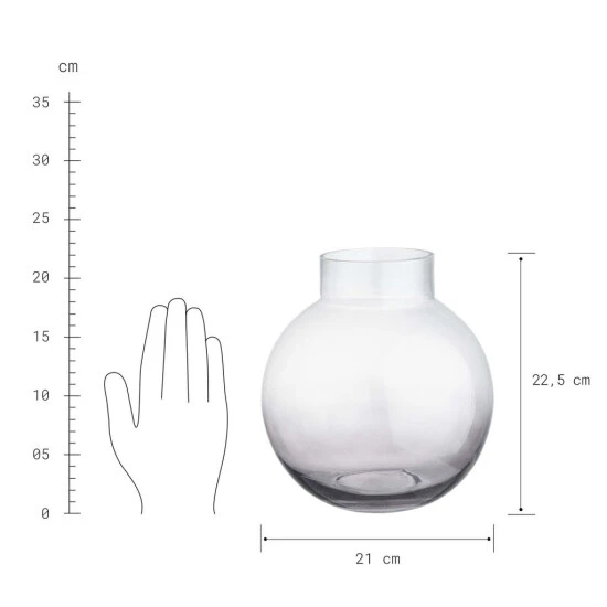 Rundum formvollendet ist die Globe Kugelvase aus Glas ein zeitloser Hingucker in Ihrer Deko oder auf dem gedeckten Tisch. Das Glas ist leicht gräulich getönt, was dieser Blumenvase einen modernen, coolen Touch verleiht. Durch den Hals hebt sich das Design von anderen Kugelvasen ab, und gleichzeitig sorgt der Vasenhals dafür, dass sich Blumen, Zweige oder Sträuße besonders gut arrangieren lassen.