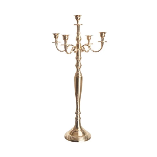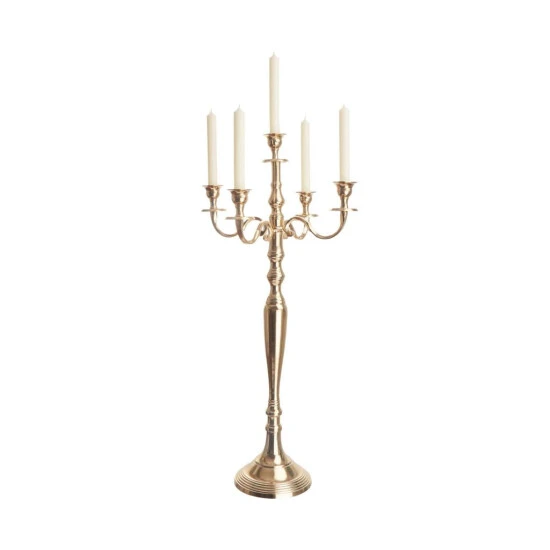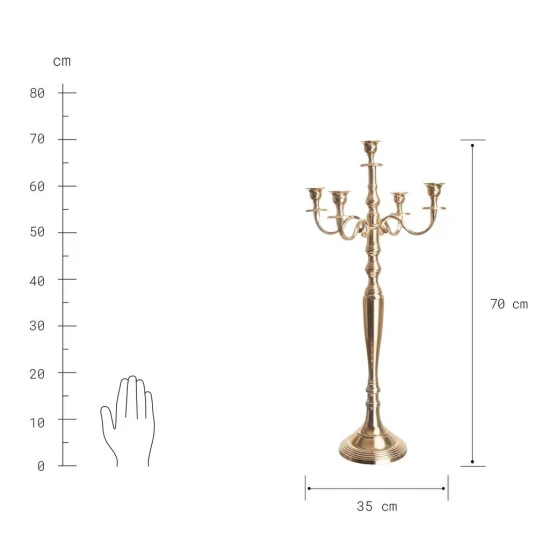 Bei diesem goldfarbenen Golden Lights Kerzenleuchter im traditionellen Stil zeugen feine Verzierungen von einer aufwändigen Verarbeitung. Im Kerzenlicht funkelt er festlich und rückt Ihr Wohnambiente in ein sehr edles Licht. Aus Aluminium, mit Filzschutz an der Unterseite. In einer weiteren Größen erhältlich.