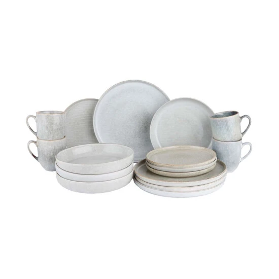 Im Spiel zwischen feiner Sprenkelung, zarter Linienführung und klassisch-robustem Steinzeug bringt das 16-teilige Pasta-Set der Henley-Serie Qualität auf den Tisch. Das Set aus jeweils vier Tassen, Schalen, Frühstückstellern sowie großen Speisetellern ist hervorrgend geeignet um den ganzen Tisch im beliebten Landhausstil einzudecken. Das Steinzeug-Geschirr der Henley-Reihe verfügen über eine sanfte Riffelung die jedes Stück zum Unikat macht und so den Tellern, Tassen und Schalen einen ganz individuellen Charme verleiht.