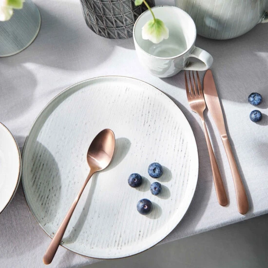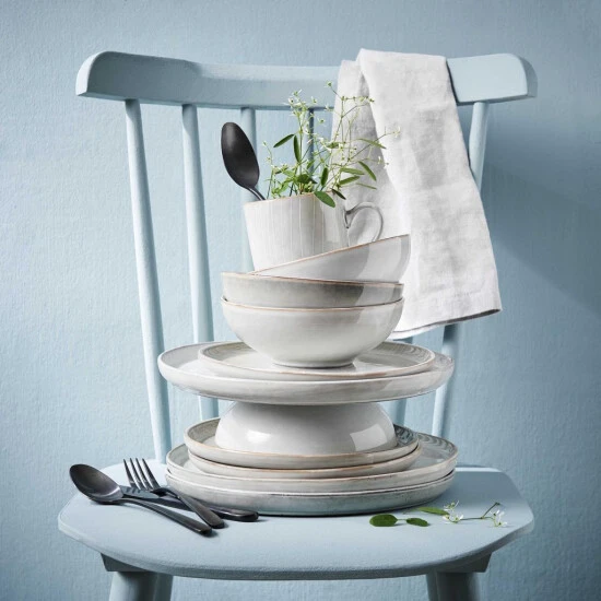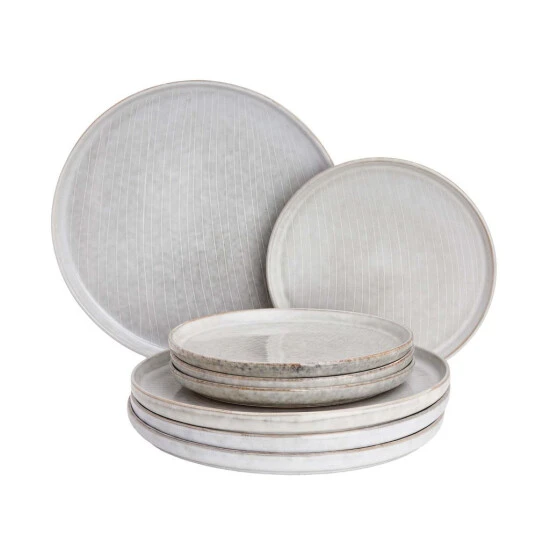 Im Spiel zwischen feiner Sprenkelung, zarter Linienführung und klassisch-robustem Steinzeug bringt das 8-teilige Tellerset der Henley-Serie Qualität auf den Tisch. Das Set aus jeweils vier Tassen, Schalen und Tellern ist hervorrgend geeignet um den ganzen Tisch im beliebten Landhausstil einzudecken. Das Steinzeug-Geschirr der Henley-Reihe verfügen über eine sanfte Riffelung die jedes Stück zum Unikat macht und so den Tellern, Tassen und Schalen einen ganz individuellen Charme verleiht.