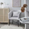 Das Neueste mit Freunden teilen und dabei einen Drink genießen: Der Jive Cocktailsessel lädt mit seinem hohen Sitzkomfort dazu ein, sich mit netten Menschen so richtig zu verquatschen. Doch auch als Einzelstück kann sich der kleine Sessel mit Stoffbezug aus 100 % Polyester und schwarzen Kiefernholzbeinen sehen lassen, z.B. im Wohnzimmer, im Flur oder Home Office.