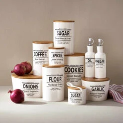Die Karlton Bros. Vorratsdose Coffee im skandinavischen Landhausstil sieht nicht nur schön aus, sondern ermöglicht auch eine ideale Lagerung Ihres Kaffees. Der große Vorratsbehälter bietet mit einer Füllmenge von 1,1 Litern ausreichend Platz für Kaffeepulver oder Bohnen. Zudem ist die Kaffeedose mit Bambusdeckel und Silikondichtung bestens geeignet um Ihren Kaffee vor Feuchtigkeit zu schützen, sodass er möglichst lange sein Aroma beibehält und die Qualität erhält. Zudem schützt der Porzellan Topf durch den Deckel die umliegenden Lebensmittel vor Aroma-Übertragung, damit Sie den Kaffeebehälter bedenkenlos neben anderen Lebensmitteln lagern können. Um das Bild perfekt zu machen, gibt es noch weitere Vorratsbehälter im skandinavischen Design aus der Karlton Bros. Serie für Ihre Küche.