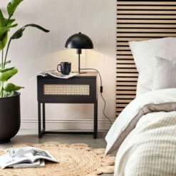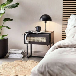 Ein Möbelstück der neuen Generation: Das Little Vienna Beistellschränkchen kombiniert Metall, Eichenholzfurnier und Rattan in Wiener Geflecht mit geradliniger, klarer Formensprache. Daraus entsteht ein ungemein modernes Design, das überall in Ihrem Zuhause für Wow- und Aha-Effekte sorgt. Sie platzieren den Bestellschrank z.B. im Wohnzimmer neben Sofa oder Sessel, nutzen ihn im Flur als Aufbewahrung und Ablage oder verwenden ihn im Schlafzimmer als Nachtschränkchen. Überall dort überzeugt das Vienna Beistellschränkchen mit einer Optik, die eher leicht als kompakt wirkt – und das trotz des massiven Gewichts dieses Möbelstücks.