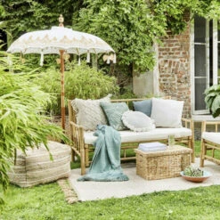 Tropisches Flair für Ihren Balkon, Ihre Terrasse oder auch Ihr Wohnzimmer: Das Lombok Sofa aus witterungsbeständigem Bambus lässt Sie von Palmen und karibischen Stränden träumen – angenehm entspannt im cremefarbenen Sitzkissen. Für eine Extraportion Farbe und Gemütlichkeit sorgen Sie mit bunten Kissen – und auch ein exotischer Cocktail passt perfekt. Weitere Lombok-Möbel erhältlich, ideal zum Kombinieren. Alle Lombok Möbel haben Unikat-Charakter: Der schnell nachwachsende, leichte und zugleich robuste Rohstoff Bambus weist naturbedingt Unregelmäßigkeiten in der Farbgebung auf, was den authentischen Charakter noch unterstreicht.