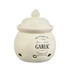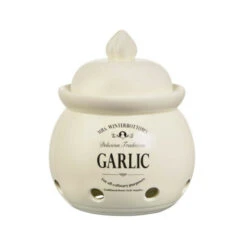 Mit diesem Knoblauchtopf im englischen Vintage Design bringen Sie Ordnung mit System in ihre Küche! Geräumig und stilvoll bietet der runde Behälter genügend Platz für die Knoblauch-Lagerung und das Aufbewahren anderer Vorräte. Die Lebensmittel bleiben im Vorratsbehälter länger haltbar, denn der Topf mit Deckel bietet Schutz vor Dreck, lagert alles ordentlich und trocken und passt zudem mit seiner Retro Form perfekt in typische Küchen im modernen oder Landhausstil.