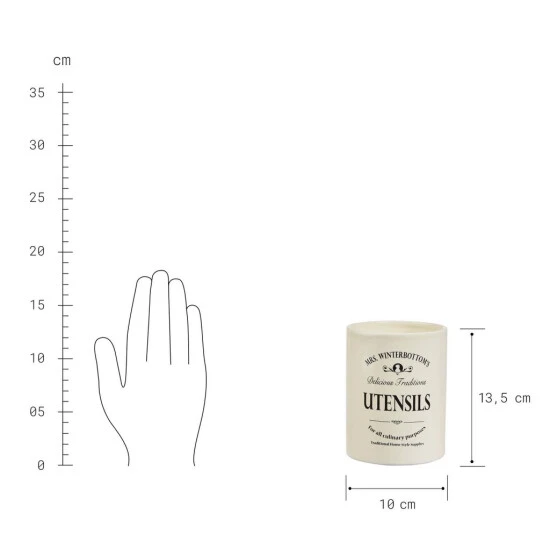 Diese Aufbewahrungsdose ist perfekter Küchenhelfer und kleiner Ordnungshüter für Ihre Küchenutensilien. Der Utensilienbehälter der Reihe Mrs. Winterbottom’s ist nicht nur formschön in creme-weißem, englischen Design sondern bietet genügend Platz für Besteck, Kochlöffel, Schneebesen und Co. Einfach im Behälter sammeln und dekorativ in der Küche aufbewahren. So sind die Utensilien griffbereit und immer geordnet.