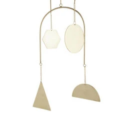 Sie genießen meditative Momente, während Sie in aller Ruhe dem goldfarbenen Peaceful Home Mobile aus Eisen und Aluminium zuschauen. Seine 4 Ornamente bewegen sich sanft im Luftzug, und bei diesem dekorativen Anblick vergessen Sie alles um sich herum.