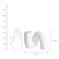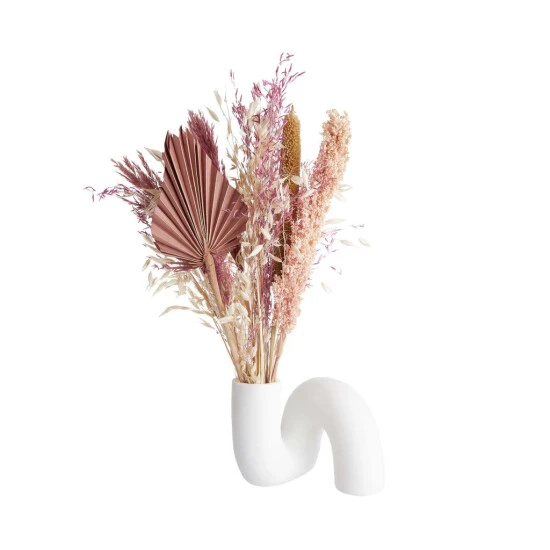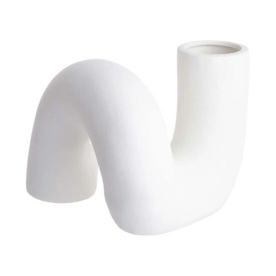 Im Leben führen manchmal verschlungene Wege ans Ziel, und auch bei der Pipe Vase aus weißer Keramik sind es die Kurven und Bögen, die das Design vollenden. Die moderne Vase lässt sich als Deko-Vase, mit einzelnen Blüten oder Zweigen oder mit Trockenblumen wunderbar in Szene setzen, etwa auf dem gedeckten Tisch oder einer Kommode.