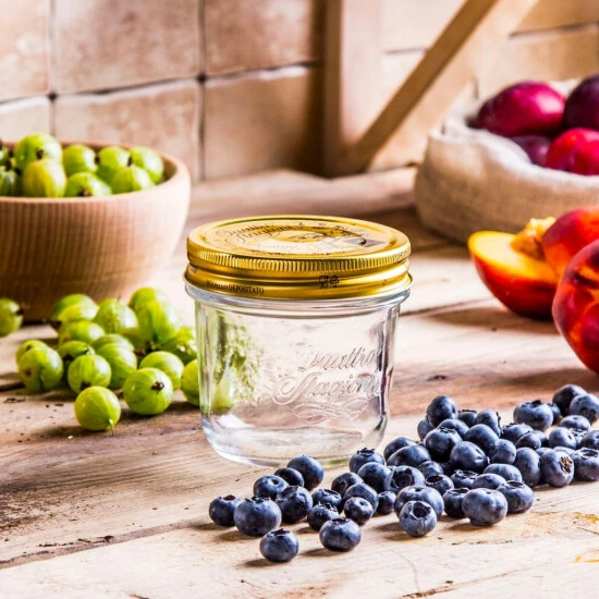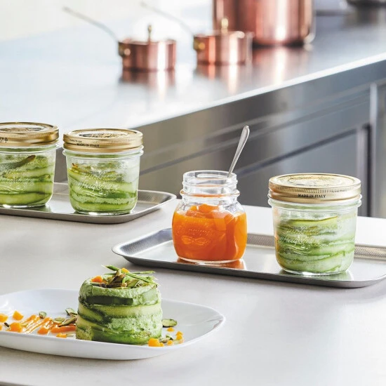Über alle vier Jahreszeiten halten die italienischen Quattro Stagioni-Schraubverschluss-Gläser Ihre Lebensmittel sicher unter Verschluss. So eignen sie sich hervorragend zum luftdichten Verpacken von Speisen, Gewürzen, Mehl, Müsli, Kräutern oder Zucker. Oder Sie verwenden die Gläser zum Einkochen von Obst, Gemüse und Marmeladen – der schraubbare Metalldeckel schließt vacuumdicht. Und falls Sie Ihr Eingemachtes verschenken wollen: Die Reliefs auf dem Glas und das italienische Nachbildung auf dem Deckel können sich gut sehen lassen. In weiteren Größen und auch als Flasche erhältlich.
