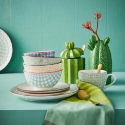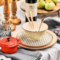 Die gelbe Suppenschale im 6er-Set des Geschirrsets, mit Blumenmuster und rotem Rand, ist als stilvolle, bunte Schale aus Porzellan, als Salatschale und Dessertschale, das Lieblingsstück auf Ihrem gedeckten Tisch. Und auch für den Trend der Bowls mit allerlei gesunden Ingredienzen und Superfoods bietet sich die dekorative Schale in verschiedenen Farben als große Müslischüssel und Highlight auf dem Frühstückstisch an.
