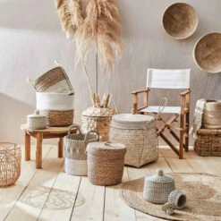 Der geflochtene runde Rush Rope Korb aus Seegras mit Deckel ist überall in Ihrem Zuhause zur Stelle, wo dies und das sonst kreuz und quer herumliegen würde. Weitere Varianten erhältlich.