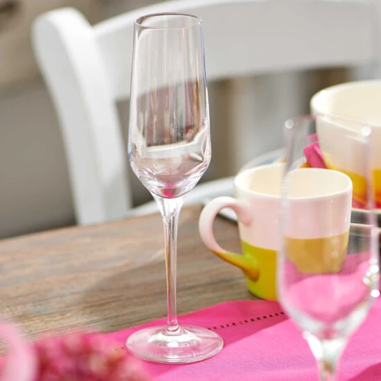 Auf Ihr Wohl: Sie stoßen an mit dem edlen Santé-Glas, wahlweise als Champagnerflöte, Weißwein-, Rotwein- und Burgunderglas erhältlich, sowohl einzeln als auch im 6er Set. Die zeitlos elegante Form passt zu jeder Gelegenheit sowie auf jede Tafel – und darf anschließend in die Spülmaschine, damit Sie keine unnötige Arbeit haben. Wenn das nicht noch ein Grund zum Feiern ist…