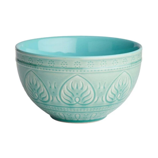 Scharfe Gewürze und kräftige Aromen passen besonders gut zu dieser exotischen Sumatra Schalen aus Steinzeug. Das traditionelle Reliefdekor hebt sich optisch sanft unter der glatten Glasur der großen, bunten Schale ab. Die Suppenschale bietet einen echten Blickfang auf Ihrem gedeckten Tisch und lässt südostasiatischen Flair aufkommen.