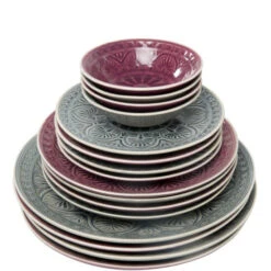 Der kleine, asiatische Sumatra Teller mit einem Durchmesser von 14 cm und traditionellem Nachbildung ist ein handbemaltes Unikat mit effektvoll glänzender Glasur. Der große Speiseteller aus Steinzeug ist ein echter Blickfang auf Ihrem gedeckten Tisch. Die kostbare Optik des bunten Tellers bietet einen feinen Kontrast zu den sehr scharf gewürzten Speisen, die man traditionell auf der Insel Sumatra reicht.
