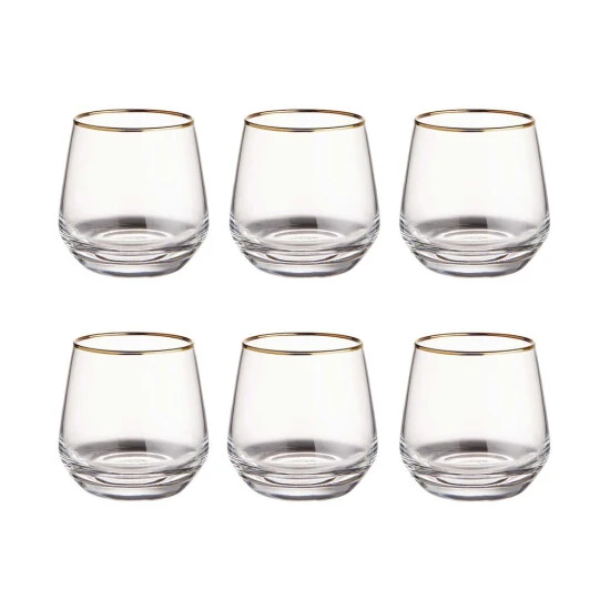 Ob zum Kaffee oder zum Wein: Ein Glas frisches Wasser in einem Touch of Gold Glas im 6er-Set mit goldenem Rand ist immer ein gern gesehener Begleiter. Es löscht den ersten Durst und neutralisiert den Geschmackssinn, so dass man sich besser auf die feinen Aromen eines guten Espressos oder edlen Tropfen konzentrieren kann.