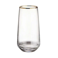 Da passt was rein: In unserem modernen Touch of Gold Longdrinkglas 480 ml im 6er-Set haben auch großzügig eingeschenkte Longdrinks Platz – inklusive einer ordentlichen Portion Eiswürfel. Da sitzen Sie und Ihre Gäste beim Essen und Feiern nicht so schnell auf dem Trockenen. Passendes Wasserglas erhältlich.